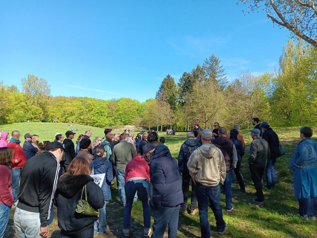Bei bestem Wetter fanden sich am Sonntag, dem 26. April 2026, mehr als 60 Menschen an der Schießanlage Schönholz ein, um mit unserer Initiative durch die Schönholzer Heide zu wandern.